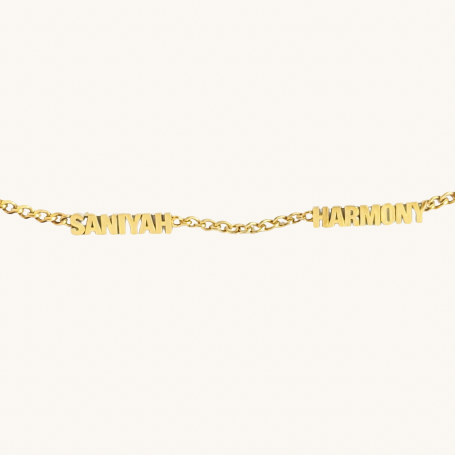 A delicate gold necklace designed to feature multiple names in a sleek, minimalist style. Perfect for celebrating loved ones, this personalized piece adds a subtle, meaningful touch to everyday layering.
