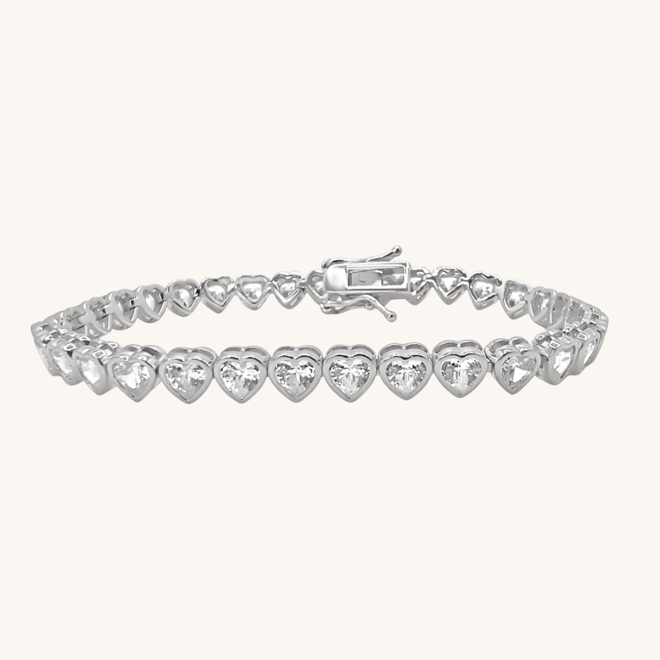 A timeless tennis bracelet designed with sparkling heart-shaped stones that catch the light beautifully. Perfect for everyday elegance or gifting, this piece adds a romantic, polished touch to any look.