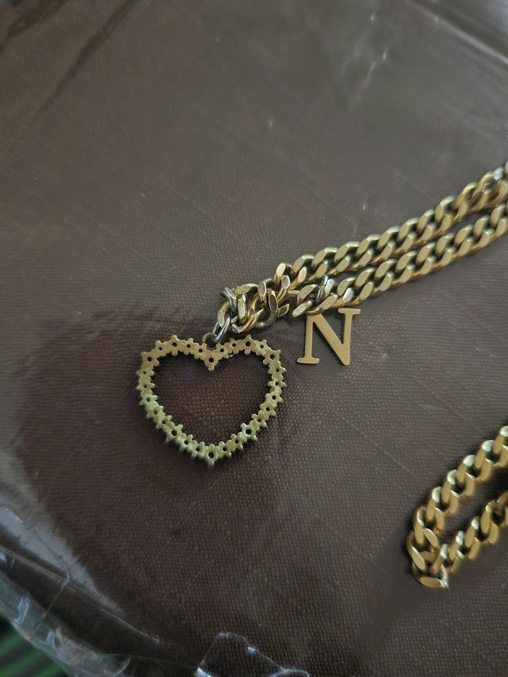 Bold and personal, this chunky Cuban chain features a sparkling heart charm and your chosen initial. It’s the perfect mix of glam and meaning—all in one standout piece.